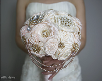 Your grandmother’s wedding dress, your father’s silk ties, antique jewelry, wine corks, broken tea cups, baby onesies and pocket watches. What do all these things have in common? They can all be incorporated into your custom-made bridal bouquet by Forever Brooch Bouquets. Ever since I met owner/creator, Michelle Levy-Phelan, I’ve been recommending her to brides so often, it’s amazing it took over a year for us to finally have a nice long chat. It was so interesting to hear Michelle’s story and how she got her start. And after only three years in business, her bridal bouquets handmade from the memorable fabrics of your family and friends, have been featured in Brides UK Magazine and Manhattan Bride.